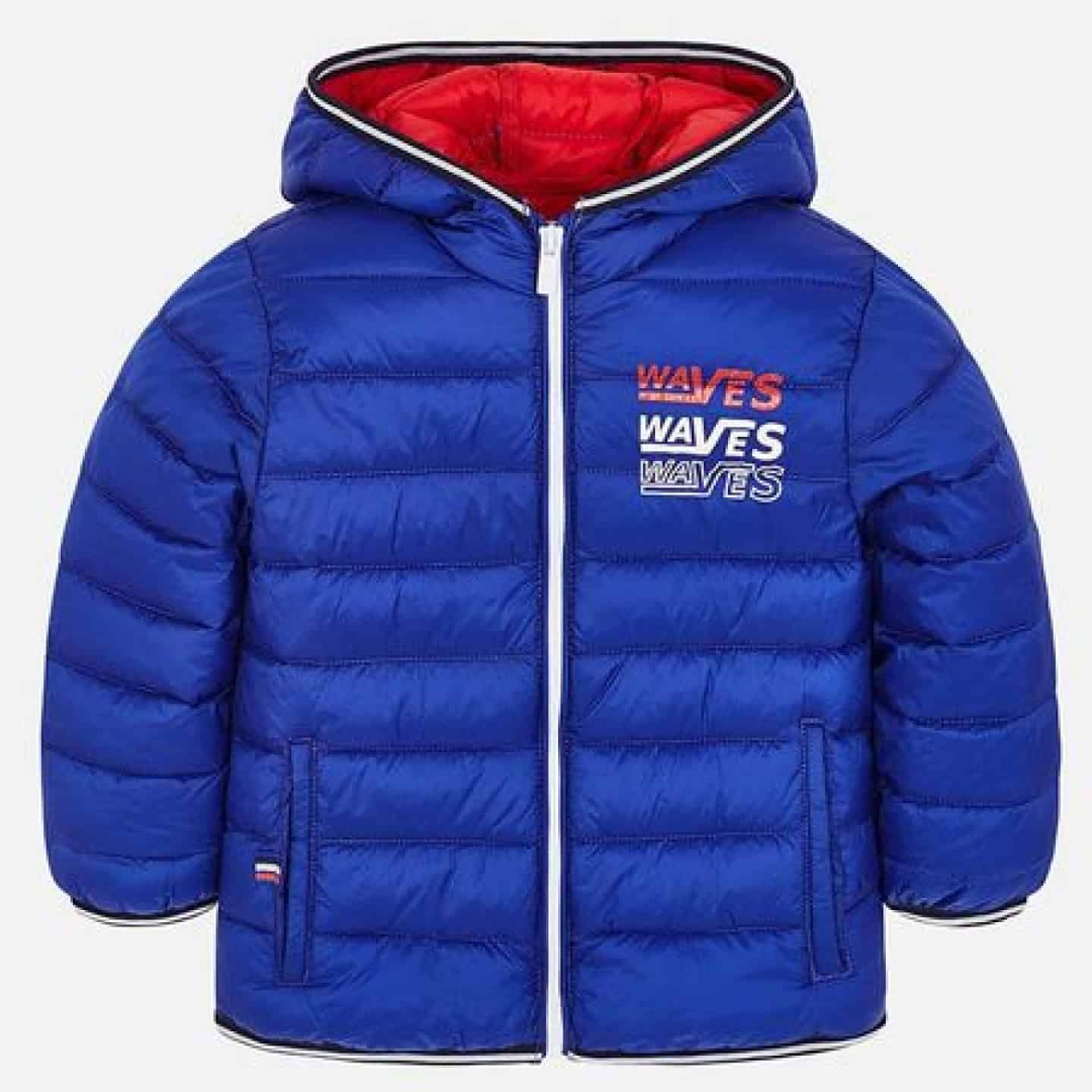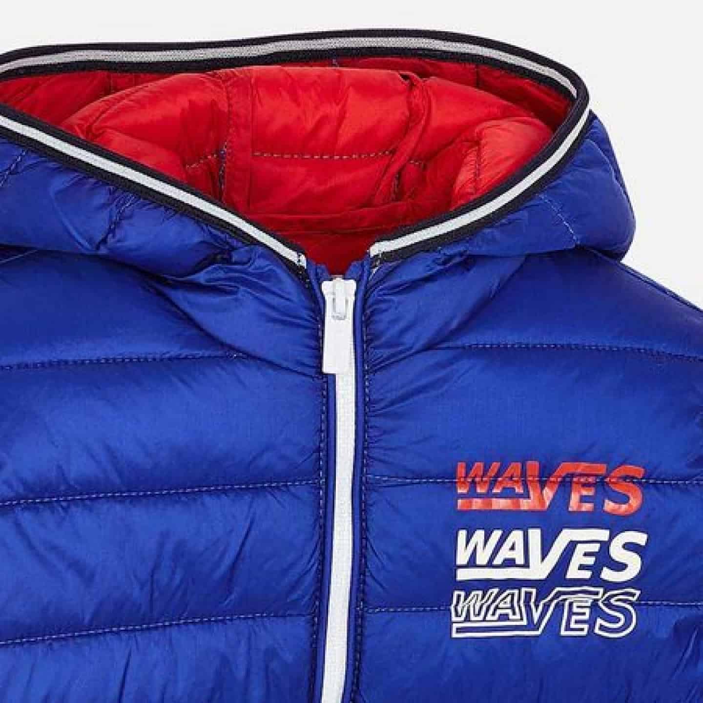 Geaca cu maneca lunga pentru baiat. Guler tip helanca. Model cu gluga. Inchidere centrala cu fermoar. Material lejer respirabil pentru un confort deosebit. Captuseala usoara pentru o izolare termica imbunatatita. Tiv cu elastic pentru o mai buna ajustare. Include sac. Buzunare pe laterale. Elemente decorative: text pe partea frontala.